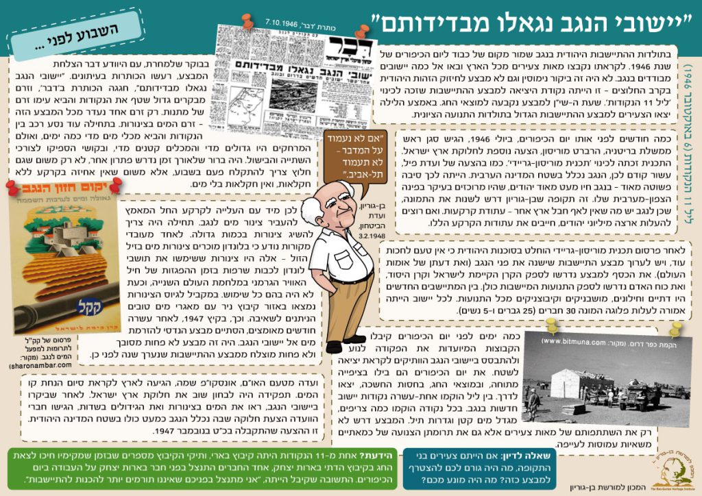 משמעות הנגב שדה-בוקר, 17.1.55 הנגב הוא עריסת אומתנו, אזור התורפה המסוכן של המדינה ותוחלתה הגדולה. כשאברהם אבינו נצטווה ללכת מארצו וממולדתו באור-כשדים, לארץ היעודה – הלך ונסע הנגבה. לאחר שהרעב הוריד אותו מצרימה – שב ועלה הנגבה. אחרי מהפכת סדום, חזר "אַרְצָה הַנֶּגֶב, וַיֵּשֶׁב בֵּין-קָדֵשׁ וּבֵין שׁוּר וַיָּגָר בִּגְרָר". (ברא' כ' 1). גם יצחק בנו […]